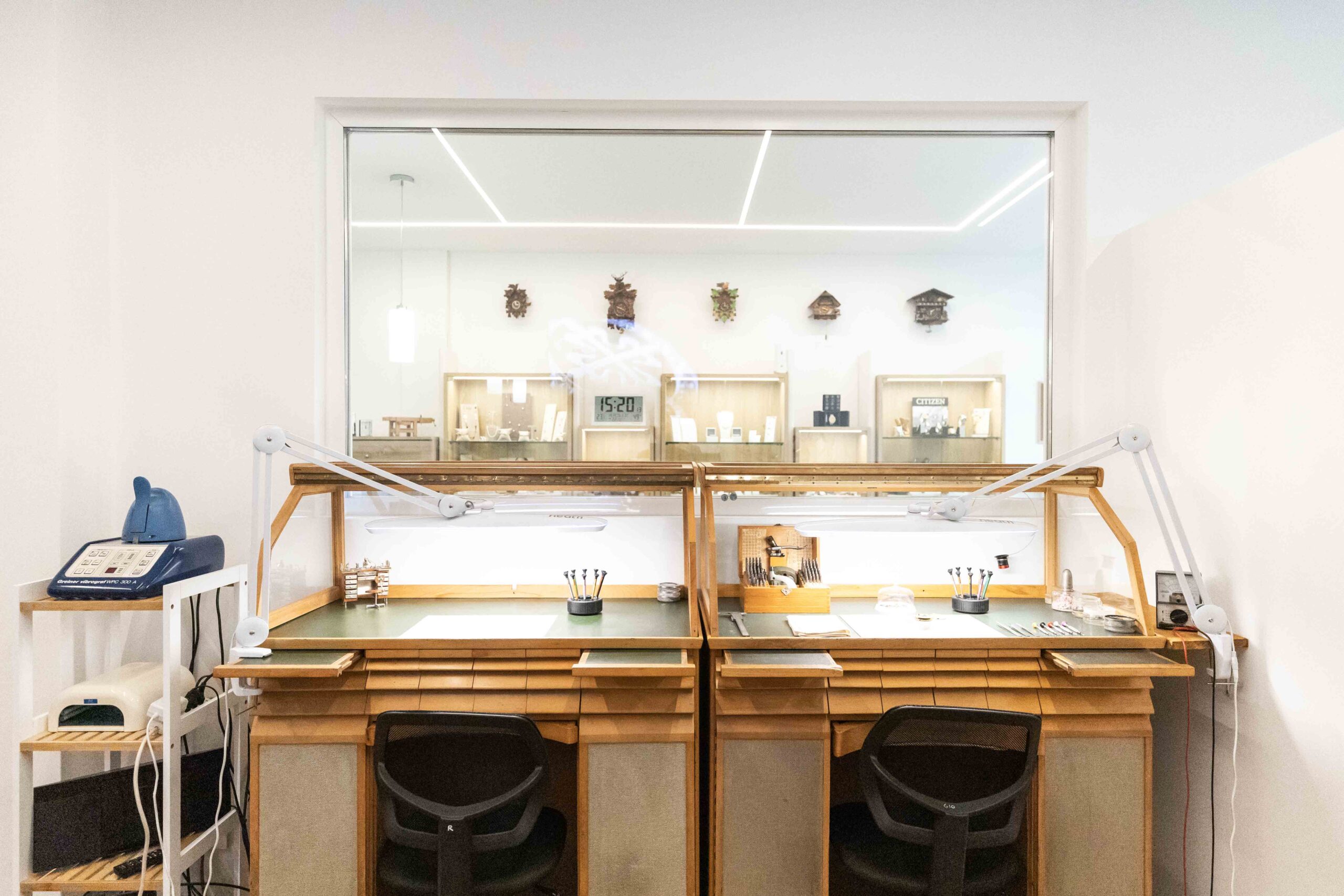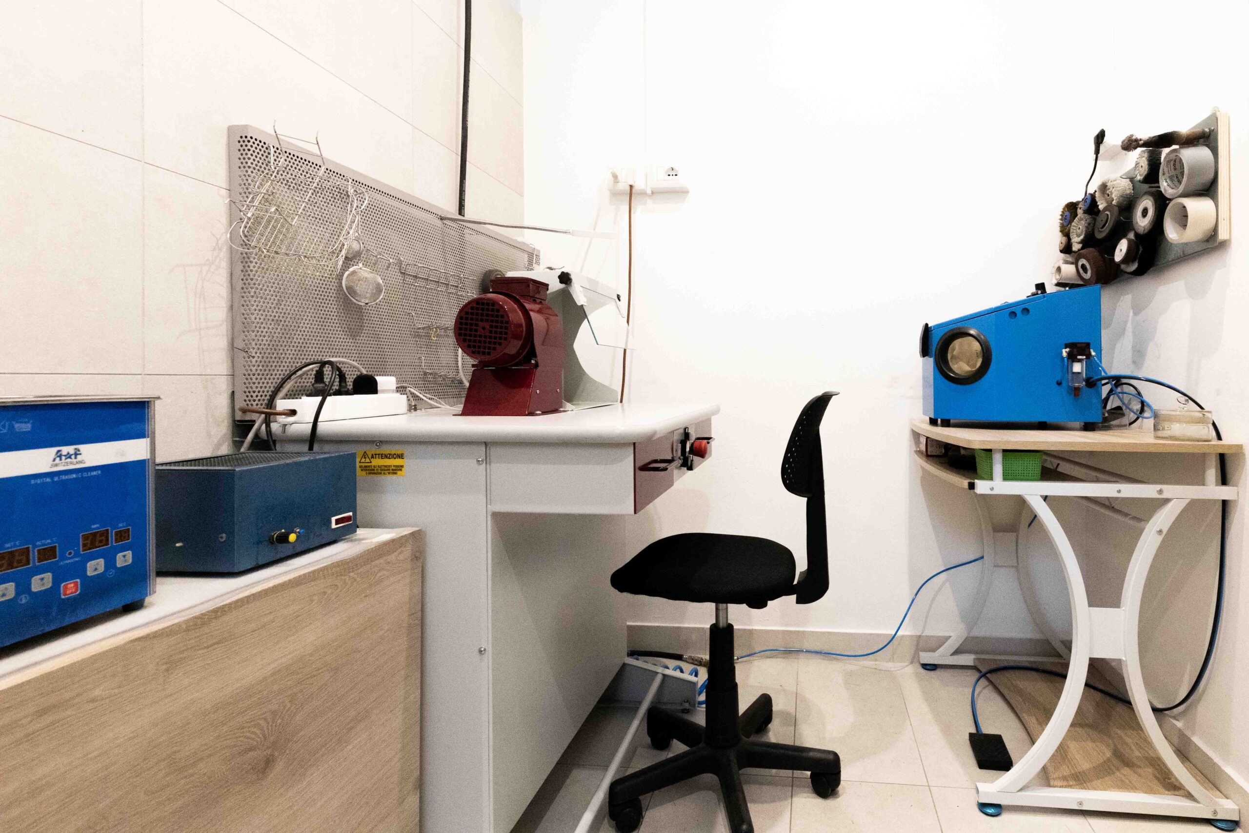 Il laboratorio è un insieme di arte e studio dove la formazione professionale e le competenze vengono aggiornate costantemente. È costituito da un connubio di qualità tecniche e manuali dei nostri artigiani–orologiai con l’implemento di macchinari di nuova generazione per dare un servizio e una qualità sempre maggiori ed affrontare ogni tipo di esigenza del cliente.
